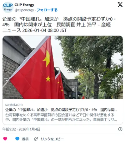 【日中】国内企業の〝中国離れ〟加速か 拠点の開設予定わずか0・4% 国内は関東が上位 民間調査