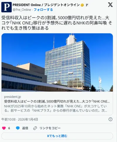 NHKONE、大爆死wwwwwwwwwww気持ち悪い同意画面などでみんなNHKのニュース記事さえ見なくなる