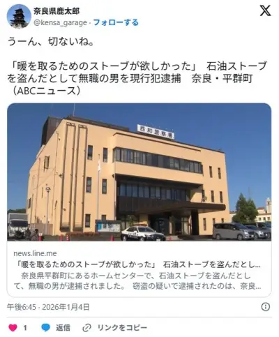 無職「寒いからストーブが欲しい…」→精算済みシールを貼る→レジの場所を聞く→捕まる
