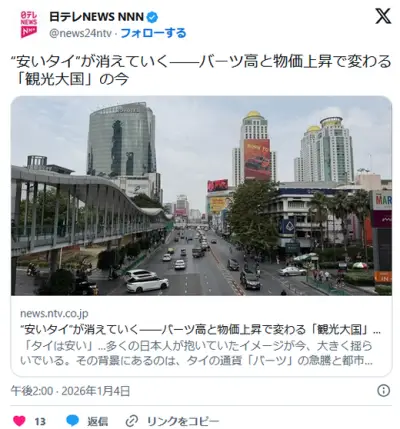 日本人「タイは高くなった」 “安いタイ”が消えていく――バーツ高と物価上昇で変わる「観光大国」の今