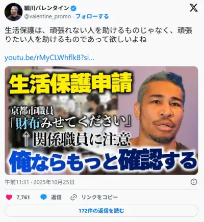 【朗報】細川バレンタイン氏、生活保護は怠け者ではなく、頑張ってる人に配るべきとバッサリ