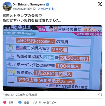 パさん「高市とトランプの会談でヤバい契約が結ばれた」 ←石破政権が合意した内容と総ツッコミ