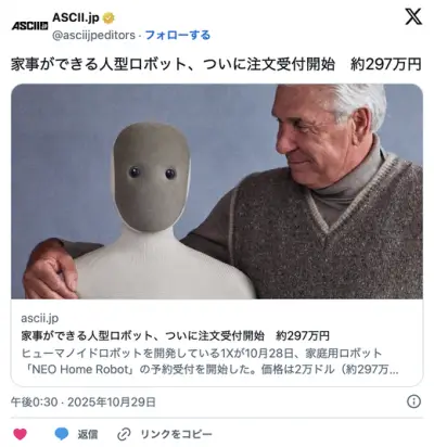 ついに家事も全部やってくれるヒューマノイドロボットが登場 お値段も300万