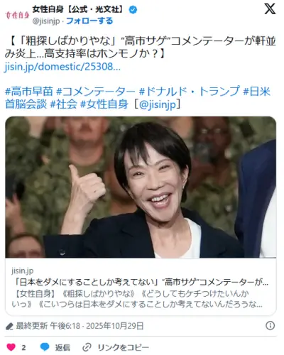 高市サゲコメンテーターが軒並み炎上「粗探しばかりやな」と厳しい指摘