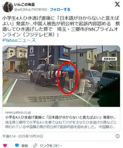 小学生4人飲酒ひき逃げ直後に「日本語が分からないと言えばよい」発言か 中国人被告が初公判で