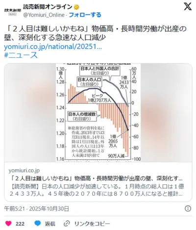👨🦱👩🦰「2人目は難しいかもね」物価高・長時間労働が出産の壁、深刻化する急速な人口減少
