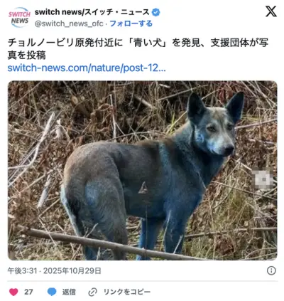 チョルノービリ原発付近に「青い犬」を発見、支援団体が写真を投稿