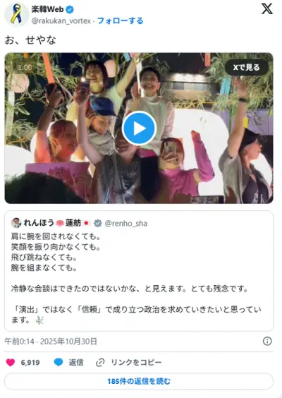 【悲報】 蓮舫 「笑顔で飛び跳ねない、演出ではない政治を求めます」 ← 選挙演説で飛び跳ねてました