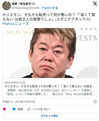 ホリエモン、「そもそも転売の何がそんなに悪いの?」「高くて買えないは貧乏人の発想でしょ」