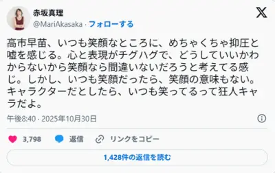 元芥川賞候補・赤坂氏「高市早苗首相はいつも笑ってるって狂人キャラ」←批判1000件「誹謗中傷だろ」