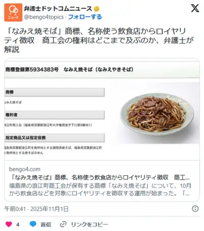 福島原発帰還困難区域のすぐ隣。福島県浪江町のなみえ焼きそばが炎上。商工会がロイヤリティ徴収