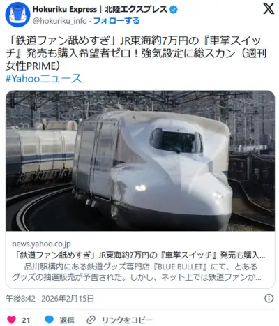 「鉄道ファン舐めすぎ」JR東海約7万円の『車掌スイッチ』発売も購入希望者ゼロ