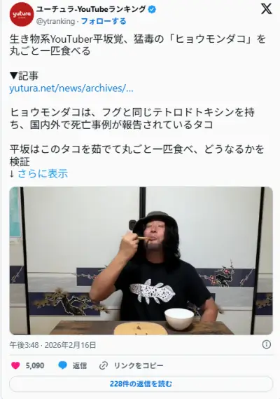 生き物系YouTuber、フグと同じ猛毒を持つ「ヒョウモンダコ」を丸ごと一匹食べる