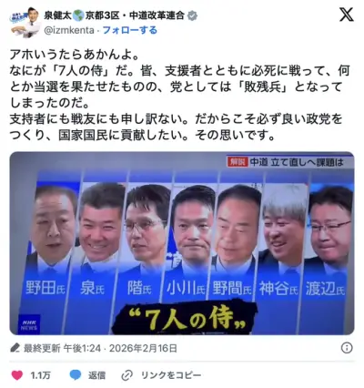 中革連・泉健太「アホいうたらあかんよ。なにが『7人の侍』だ。党としては『敗残兵』」