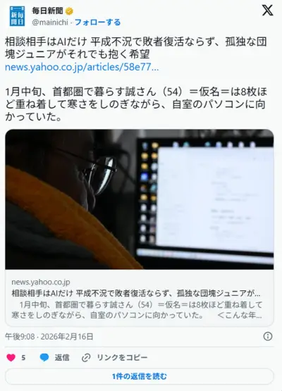 相談相手はAIだけ 54歳、孤独な団塊ジュニアがそれでも抱く希望