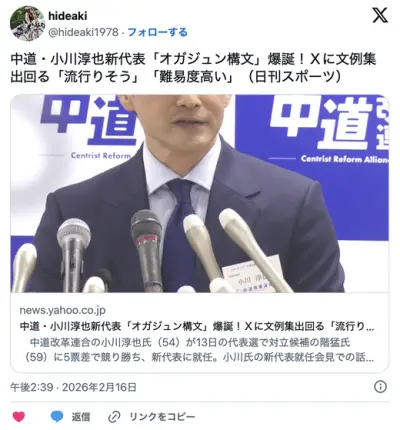 中道・小川淳也新代表「オガジュン構文」爆誕!Xに文例集出回る「流行りそう」「難易度高い」 - 日刊スポーツ