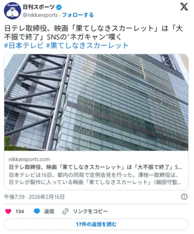 日テレ、「果てしなきスカーレット」が大爆死した理由を分析 「ネガキャンの波にのみ込まれた」