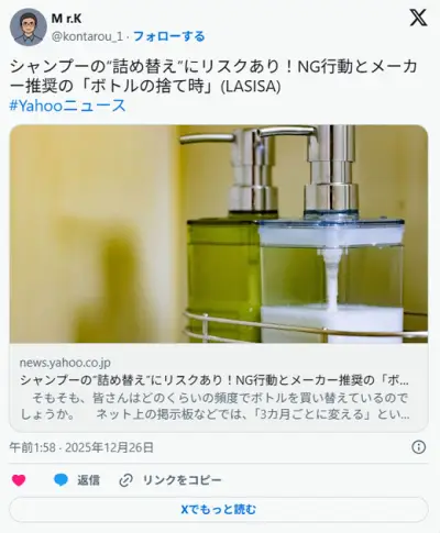 【生活】シャンプーの“詰め替え”にリスクあり!NG行動とメーカー推奨の「ボトルの捨て時」