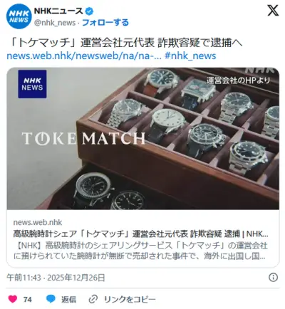 トケマッチ、サービスイン直後から預かった高級腕時計を質入れ 最初からポンジスキームだった