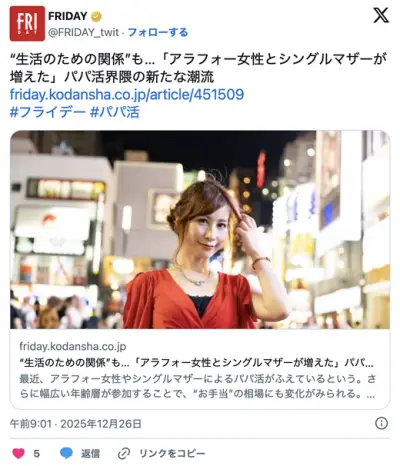 【パパ活】“生活のための関係”も…「アラフォー女性とシングルマザーが増えた」パパ活界隈の新たな潮流