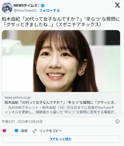 柏木由紀「30代って女子なんですか?」“辛らつ”な質問に「グサッときましたね…」