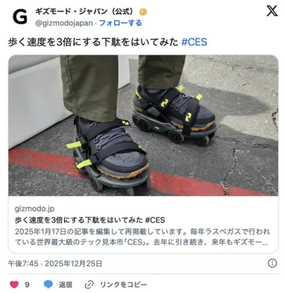 通常の3倍の速度で歩ける靴を販売。20万0000円。