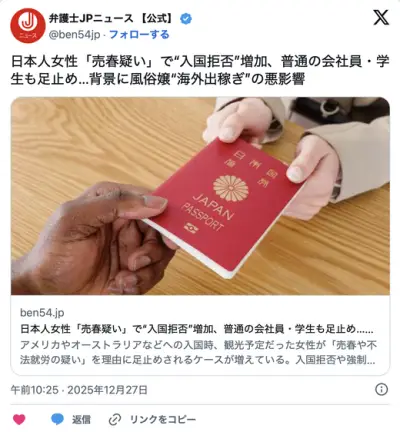 日本人女性、「売春疑い」で世界中で入国拒否増加www普通の会社員や学生も疑われショック受ける