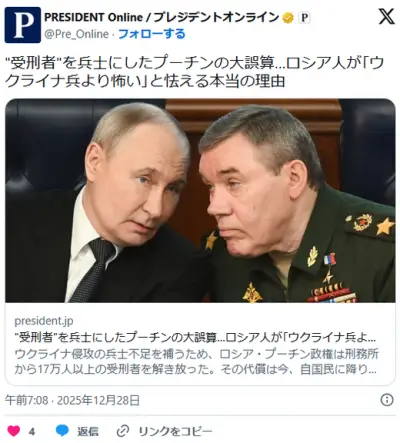 【国際/露】"17万人以上の受刑者"を兵士にしたプーチンの大誤算…ロシア人が「ウクライナ兵より怖い」と怯える本当の理由