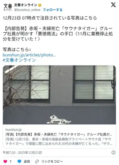 【文春】《内部告発》赤坂・夫婦死亡「サウナタイガー」グループ社員が明かす「悪徳商法」の手口〈11月に業務停止処分を受けていた!〉
