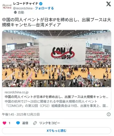 【悲報】中国、切り札を切る。同人誌即売会で日本の作品の同人誌やコスプレを禁止
