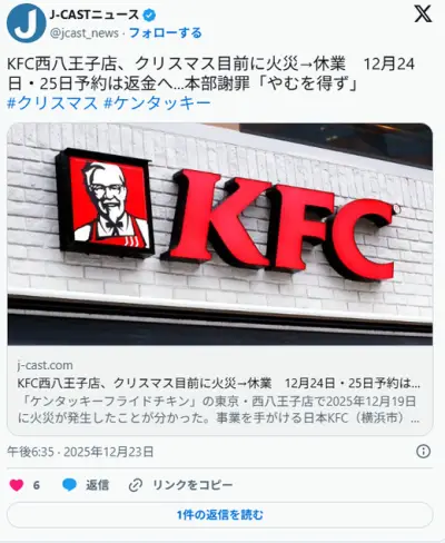 KFCケンタッキーフライドチキンが炎上 予約返金へ