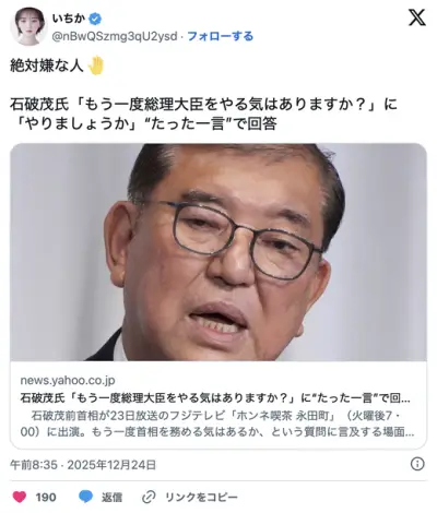 アナウンサー「石破さん、今後また風が吹いたら総理大臣をやりますか?」