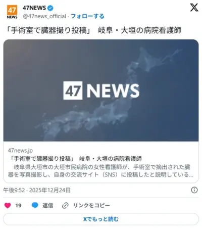 女性看護師、私物のタブレットを手術室に持ち込み患者の臓器を撮影→インスタグラムに投稿→口頭注意
