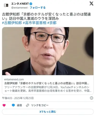 古舘伊知郎氏「京都のホテルがめっちゃ安くなったと喜んでいる人がいるけど間違いですからね」