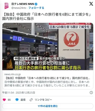 【朗報】中国政府「日本への旅行者を6割に減らそう」