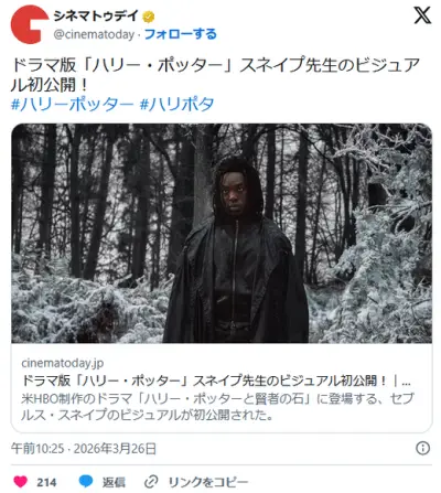 ドラマ版「ハリー・ポッター」スネイプ先生のビジュアル初公開 一部の過激なファンから激しいバッシングや殺害予告も…