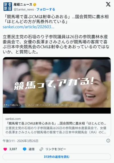 立憲民主党「競馬場で喜ぶCMは射幸心あおる」