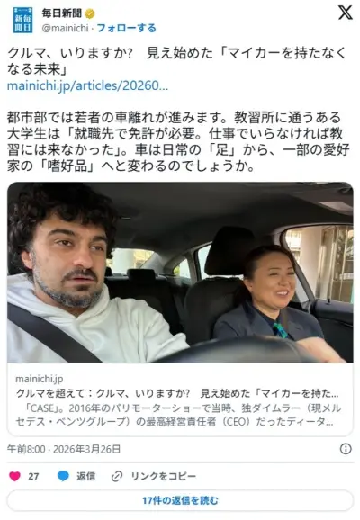 【社会】クルマ、いりますか? 見え始めた「マイカーを持たなくなる未来」
