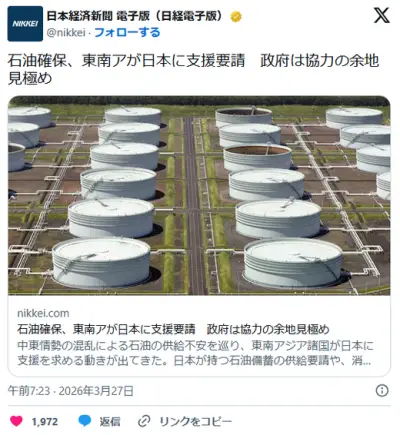 東南アジア各国 石油不足でなぜか日本への支援を要請