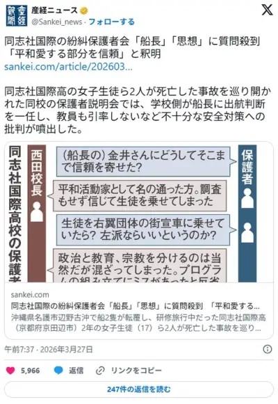 同志社国際高校、40年以上前から自虐史観・偏向教育か 反発すれば退場、単位に影響も OBが告発