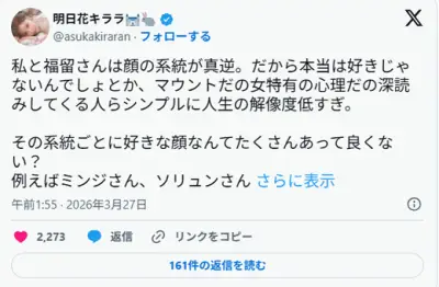 【悲報】明日花キララさん、福留さんと比べられてお気持ち表明