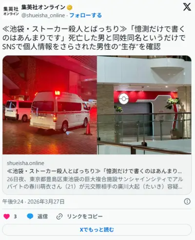 ≪池袋・ストーカー殺人とばっちり≫「憶測だけで書くのはあんまりです」同姓同名というだけでSNSで個人情報をさらされた男性