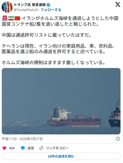 イラン「中国籍タンカーもホルムズ海峡は通さん!」 →通行断念へ