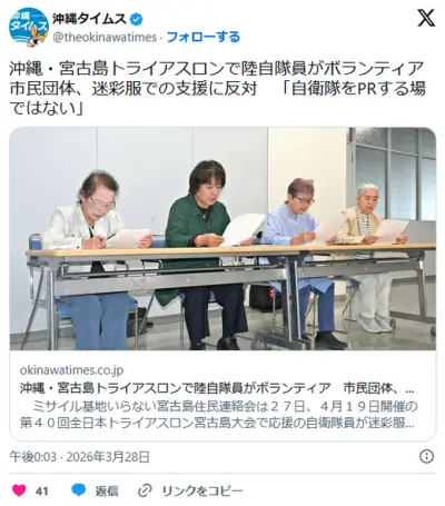 沖縄・宮古島トライアスロンで陸自隊員がボランティア 市民団体、迷彩服での支援に反対 「自衛隊をPRする場ではない」