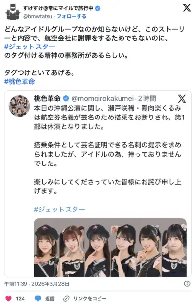 地下アイドルさん、芸名で飛行機に搭乗しようとするも無事却下される