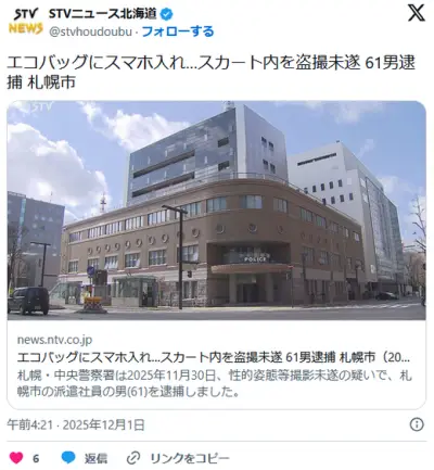 【SDGs】エコバッグにスマホ入れ…スカート内を盗撮未遂 61男逮捕 札幌市