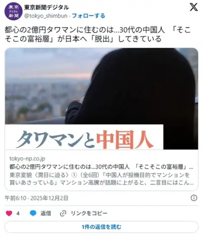 都心の2億円タワマンに住むのは…30代の中国人 「そこそこの富裕層」が日本へ「脱出」してきている