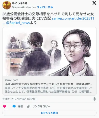 26歳公認会計士をハサミで刺して死なせた女 「ハゲすぎる。やっぱり毛がある人がいい」←死刑で