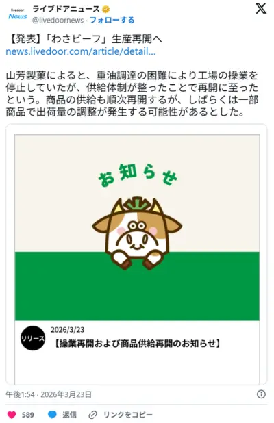 【悲報】わさビーフ、生産再開 転売ヤー地獄のわさビーフ生活へwwwwwwwwww