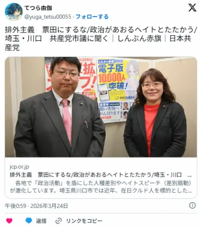 共産党「川口のクルド人は今まで平穏に共存してきた。排外主義やめろ」
